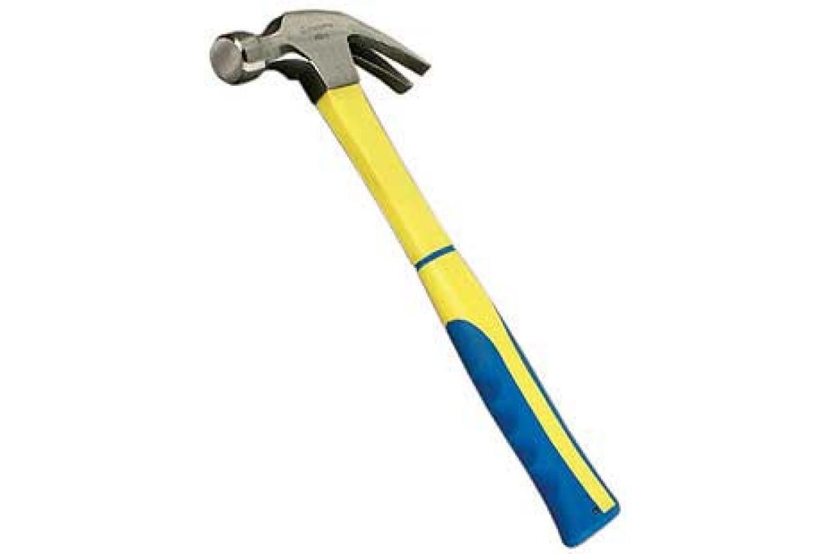 Молоток-гвоздодер ЗУБР 20235-560 - инструмент для строительных работ весом 0.56 кг, состоящий из круглого стального ударного элемента с плоской поверхностью, гвоздодера и металлической обрезиненной рукоятки, используется для забивания и выдергивания гвоздей.