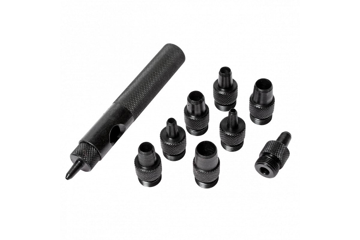 Набор пробойников МАСТАК 109-80009 предназначен для изготовления отверстий в листовых материалах. Изготовлен из инструментальной стали с защитным покрытием. Разработан для профессионального использования в автосервисах и на СТО.