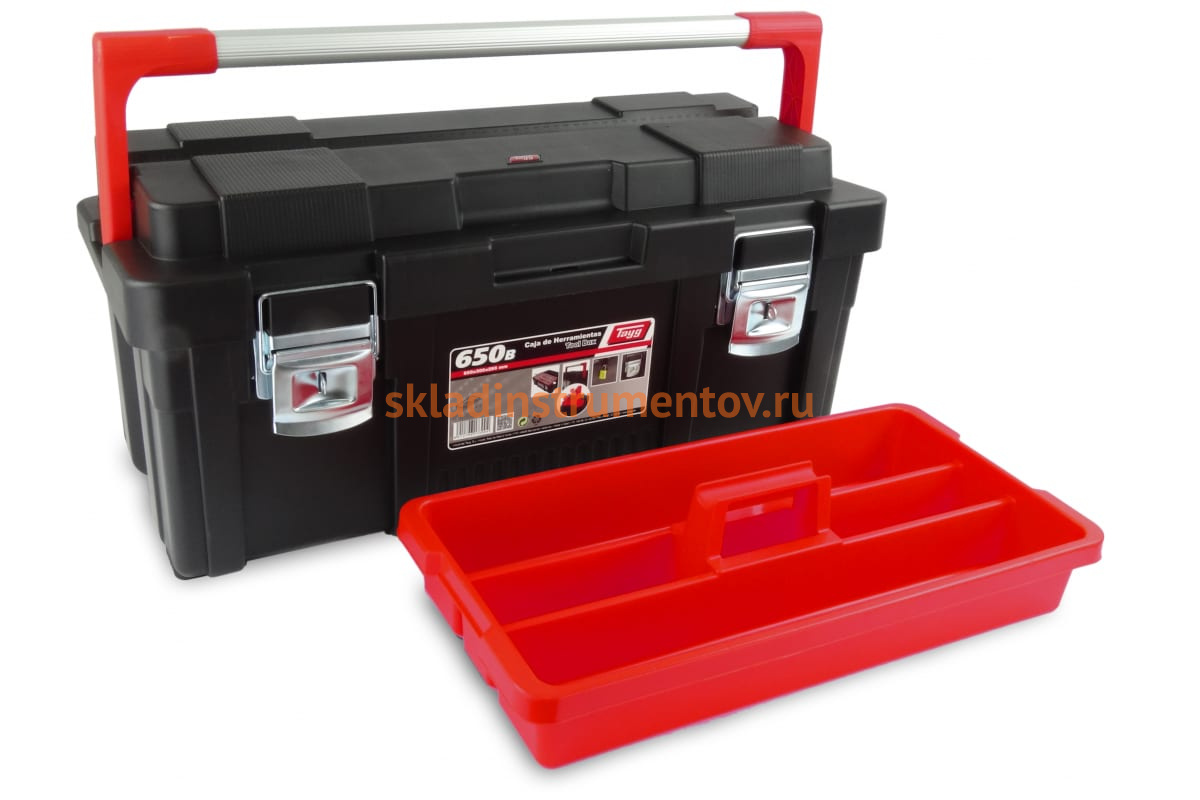 Ящик для инструментов 650x300x295мм + лоток Tayg 172007 подойдет для переноски и хранения большого количества ручного инструмента.