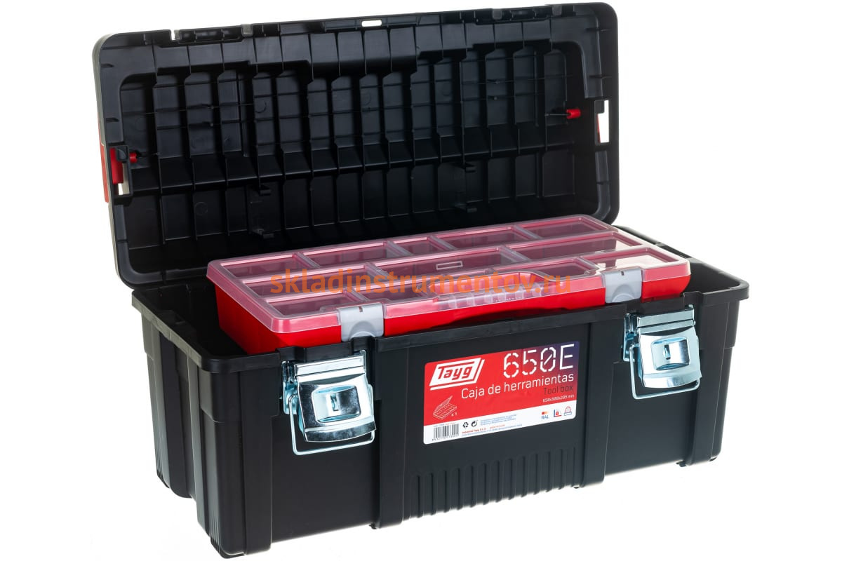 Ящик для инструментов 650x300x295мм + органайзер Tayg 173004 подойдет для переноски и хранения большого количества ручного инструмента.
