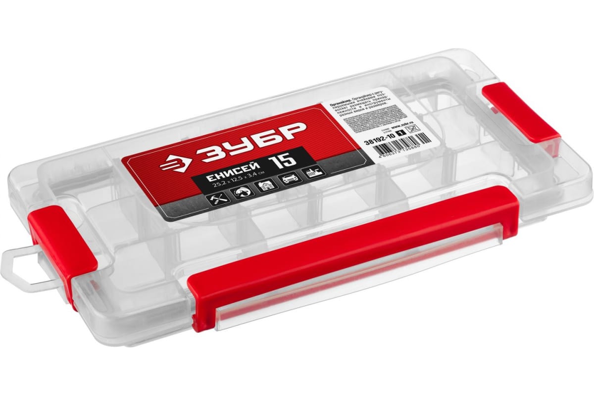 Пластиковый органайзер Зубр ЕНИСЕЙ-15 38192-10_z01 подойдет для хранения крепежа. Благодаря компактности и полупрозрачной крышке изделие обеспечивает максимальное удобство при работе монтажника.