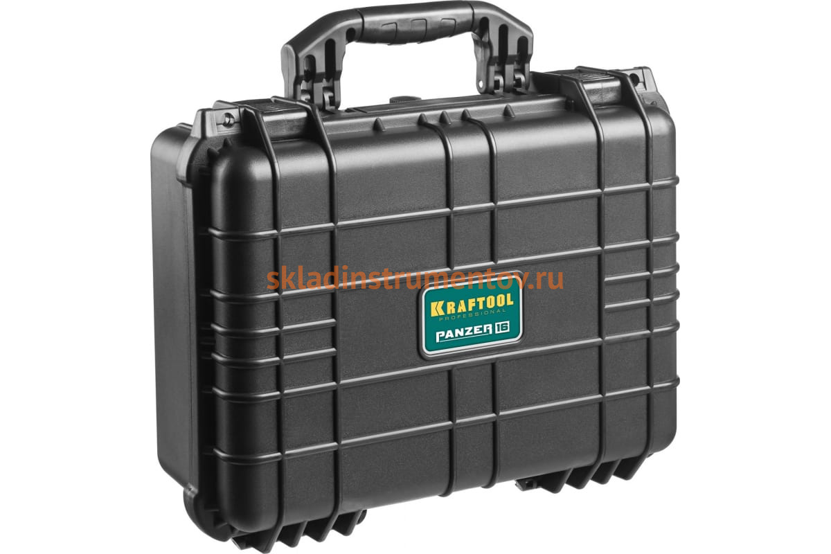 Ударопрочный пластиковый ящик, степень защиты IP55, 16", KRAFTOOL "PANZER" 38251-16 удобен для транспортировки ручного инструмента.