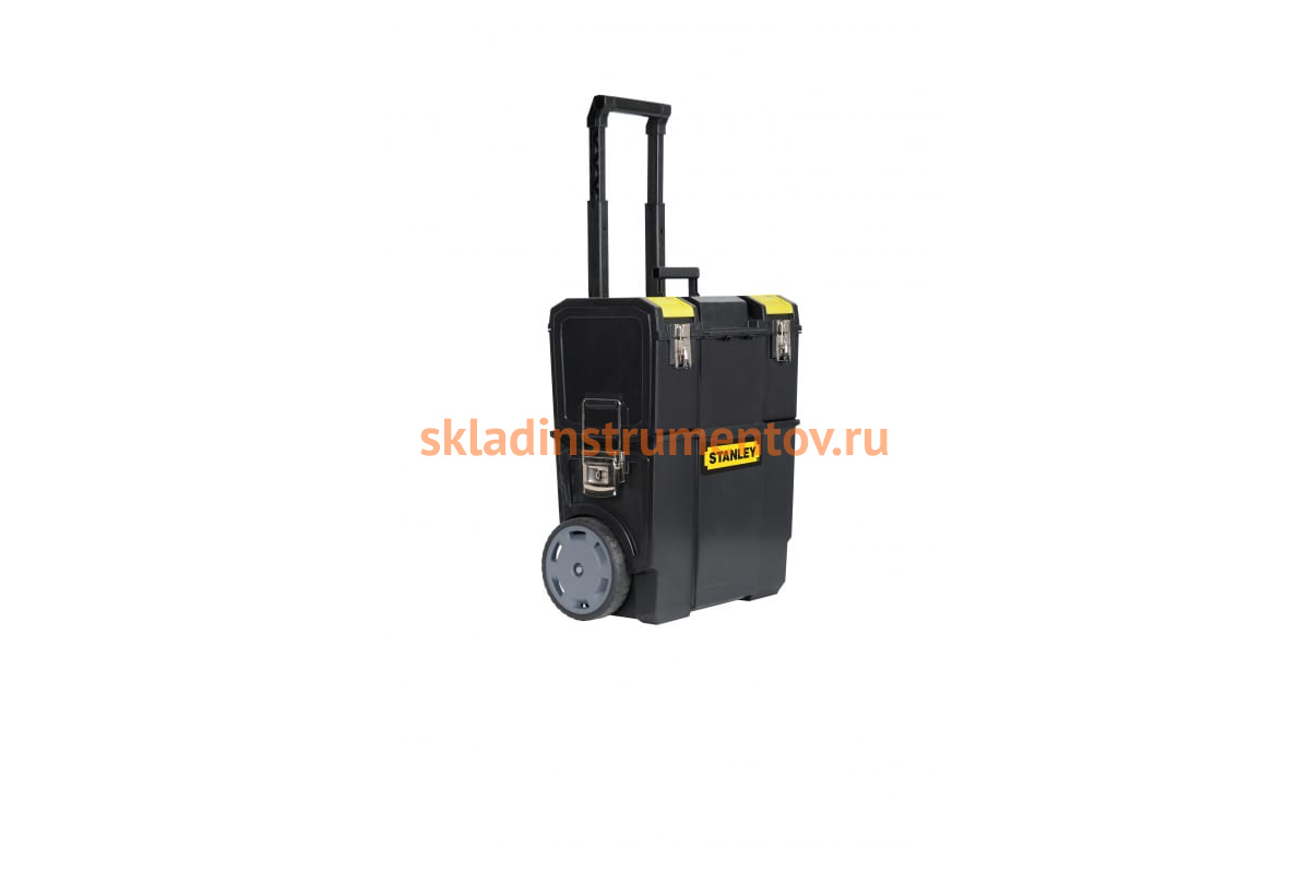 Ящик Mobile WorkCenter 2 в 1 Stanley 1-70-327 предназначен для хранения и удобной транспортировки инструментов. Большие металлические защелки надежно защищают ящик от непреднамеренного открывания. Мелкие детали удобно разместить в отделении на съемной верхней секции, крупный инструмент - в нижнем отделении. Инструментальный ящик применяется как в профессиональной сфере, так и в быту: он очень вместительный, помогает упорядочить нужные в работе предметы и всегда держать их под рукой. Ящик оснащен колесами диаметром 7", телескопической ручкой для легкого перемещения.