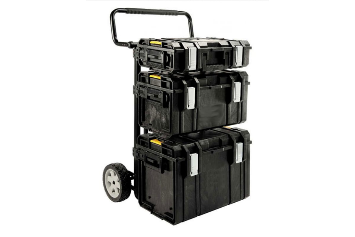 Ящик для инструмента DEWALT TOUGH SYSTEM 4 IN 1 Stanley 1-70-349 предназначен для хранения и удобной транспортировки инструментов. Большие металлические защелки надежно защищают ящик от непреднамеренного открывания. Инструментальный ящик применяется как в профессиональной сфере, так и в быту: он очень вместительный, помогает упорядочить нужные в работе предметы и всегда держать их под рукой. Ящик оснащен колесами диаметром 20 см, телескопической ручкой для легкого перемещения. Металлический каркас выдерживает нагрузку до 150 кг и оснащен надежными запорами для фиксации всех секций. Все комплектующие по периметру уплотнены водоотталкивающим покрытием.