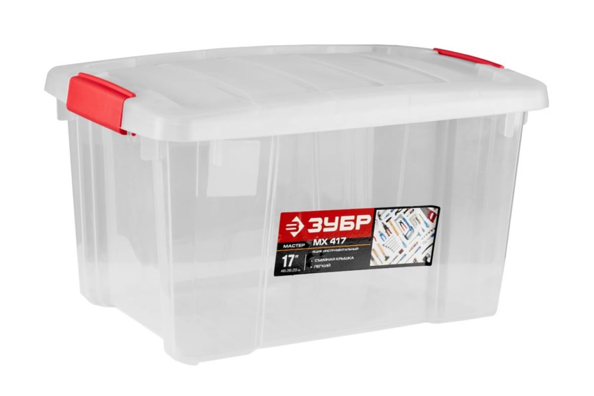 Пластиковый ящик (440x290x160 мм; 17") Зубр МАСТЕР 38182-17 предназначен для хранения различных инструментов и принадлежностей, а также бытовых предметов. Он гармонично впишется в любой интерьер и не займет много места при хранении. Ящик выполнен из прочного прозрачного пластика.