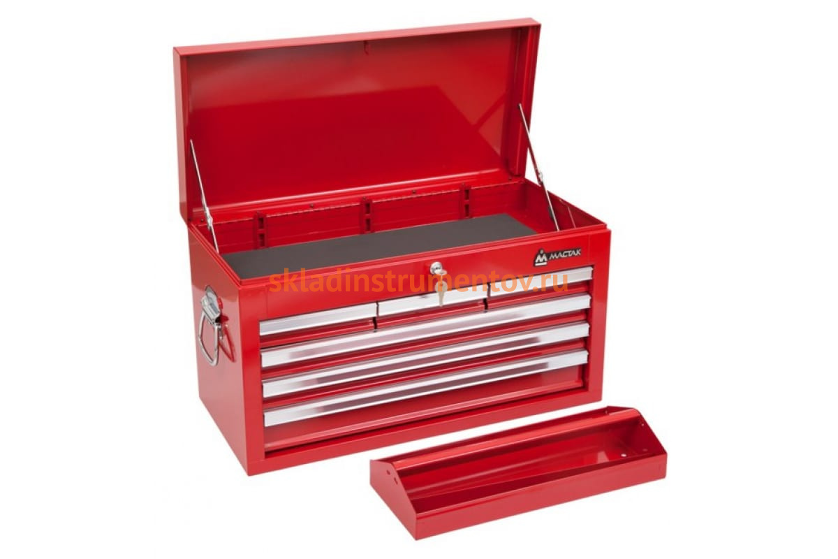 Инструментальный ящик (6 полок) МАСТАК 511-06570 представляет собой жесткую металлическую конструкцию для упорядоченного хранения и транспортировки различных предметов - например, ручного инструмента. 6 отделений позволяют рассортировать приспособления для удобства поиска. Запирающийся на ключ верхний отсек исключает несанкционированный доступ к имуществу.