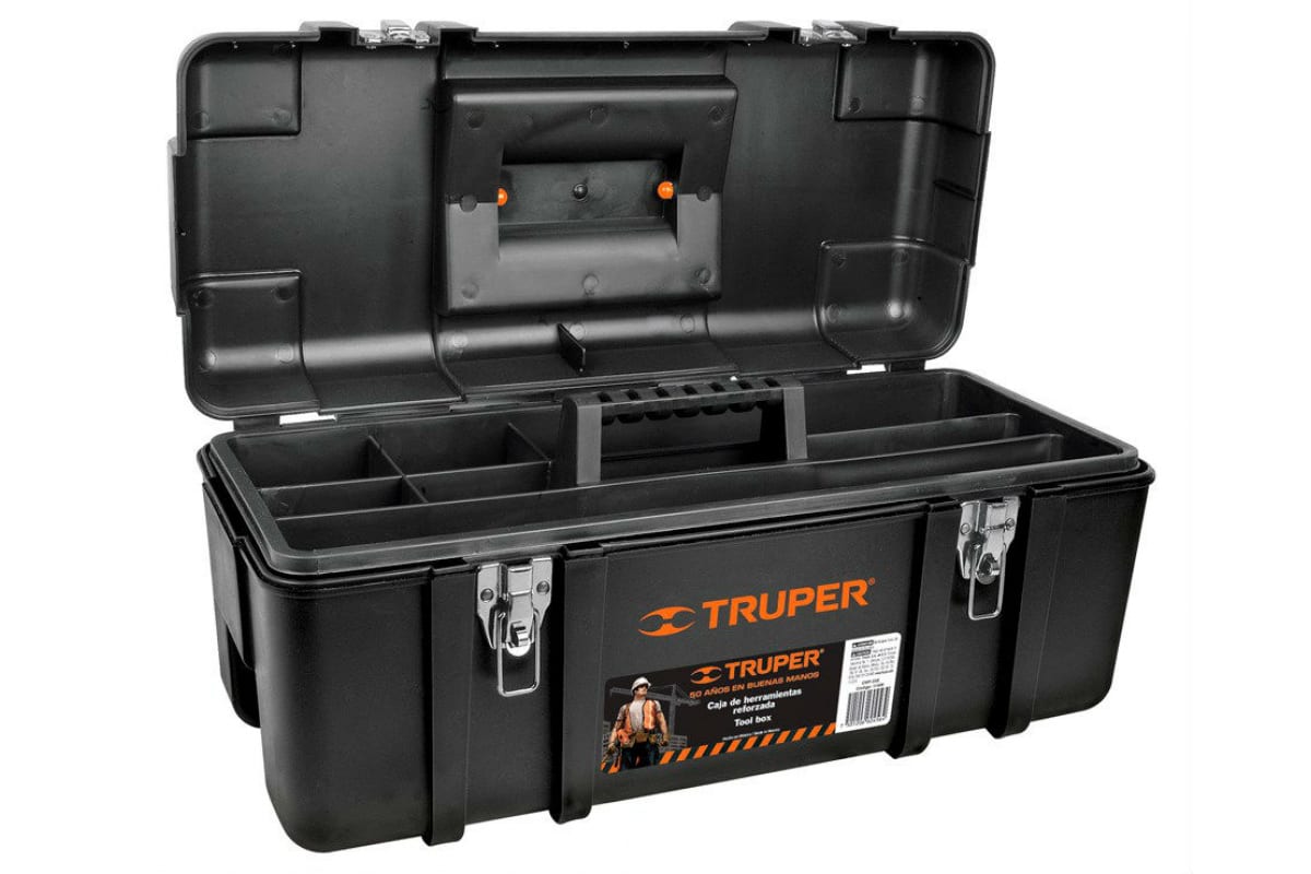 Пластиковый ящик для инструмента 17" Truper CHP-17X 19656 имеет несколько отсеков для удобного хранения инструментов и различных мелочей.