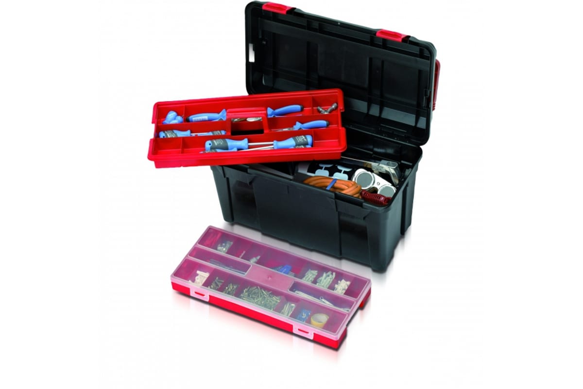 Бокс полипропиленовый PARAT PA-5813000391 предназначен для хранения ручного инструмента, мелких деталей, принадлежностей и крепежа. Ящик черного цвета объемом около 48 л выполнен из высококачественного полипропилена. Отличается легкостью, вместительностью и устойчивостью к воздействию масел и химических веществ. Благодаря кассете-вставке для крепежных элементов и мелочей, принадлежности не перемешиваются при переноске и остаются в своих ячейках. В комплекте также идет переносной контейнер. Бокс надежно закрывается на два запора, для большей безопасности содержимого есть возможность использования навесного замка. Для удобной переноски ящик оснащен продольной ручкой с функцией фиксации крышки.