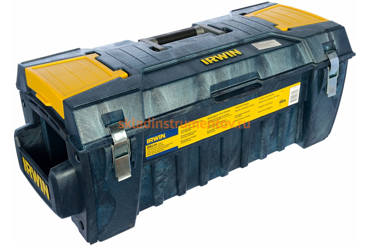 Ящик Pro IRWIN 10503817 предназначен для хранения и транспортировки инструментов. Две металлические защелки надежно защищают от непреднамеренного открывания. Можно дополнительно установить навесной замок. Сверху располагается переносной лоток для мелких деталей. Приспособление оснащено удобной прорезиненной ручкой. Ящик выполнен из ударопрочного пластика, способного выдержать большие нагрузки и низкую температуру.
