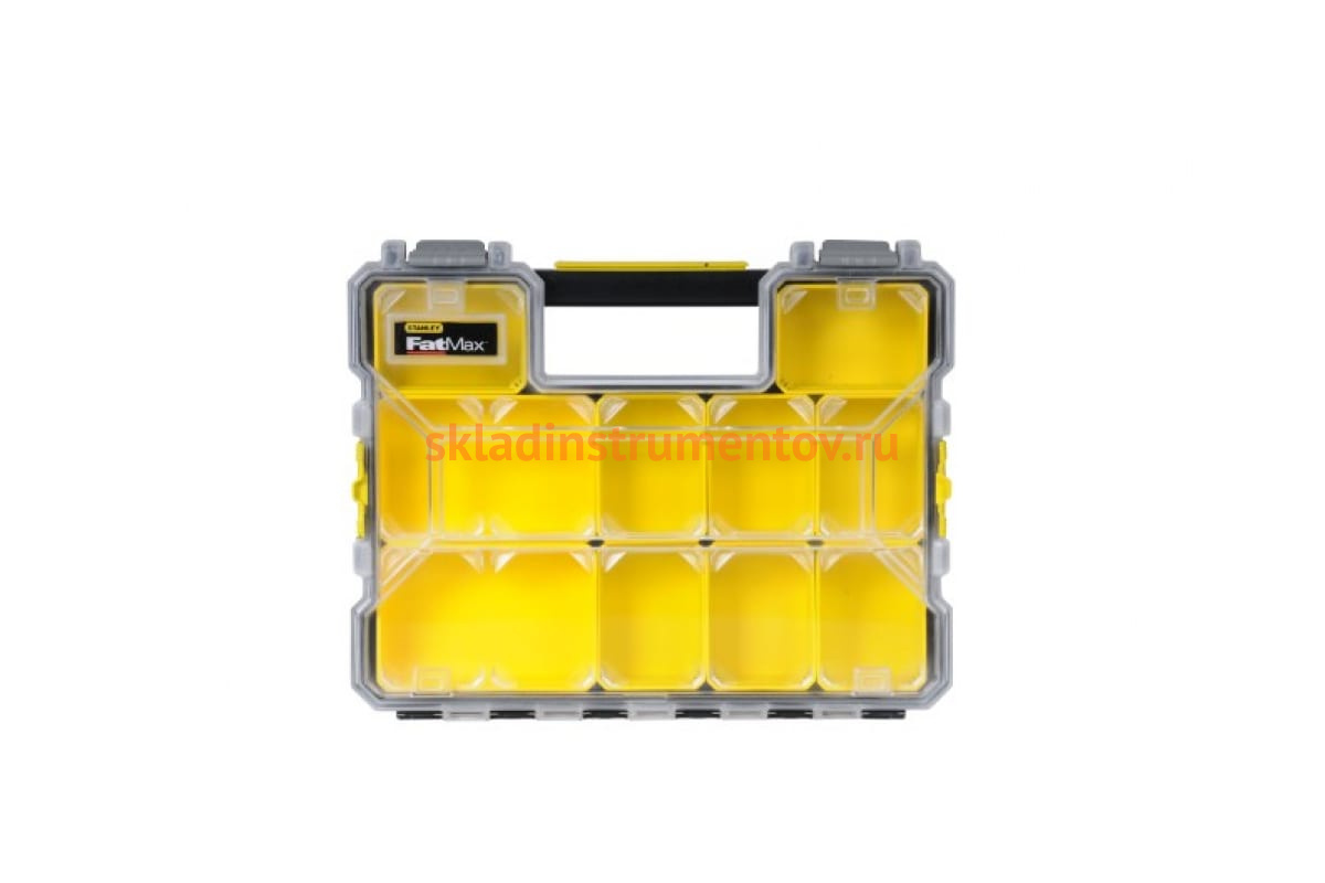 Профессиональный органайзер STANLEY FatMax Shallow Pro Plastic Latch 1-97-519 широко используется как в бытовой, так и в рабочей сфере деятельности мастерами-любителями, а также монтажниками для хранения крепежа, мелких деталей и аксессуаров. Органайзер имеет закрывающуюся прозрачную крышку, которая облегчает обзор необходимых изделий и предотвращает их утерю.