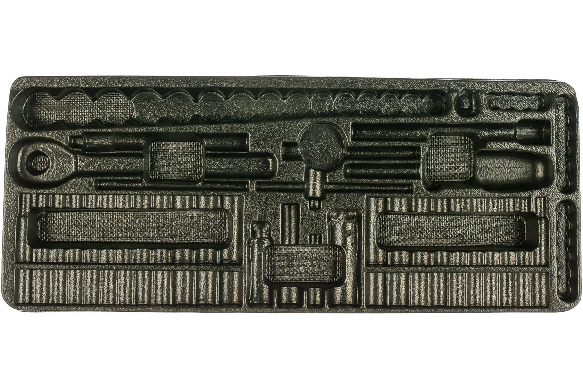 Ложемент для набора торцевых головок 9033CR, нижний PVC KING TONY 84509212B выполнен из прочного пластика. Материал устойчив к несильным ударам, не крошится и не распадается при длительной эксплуатации.