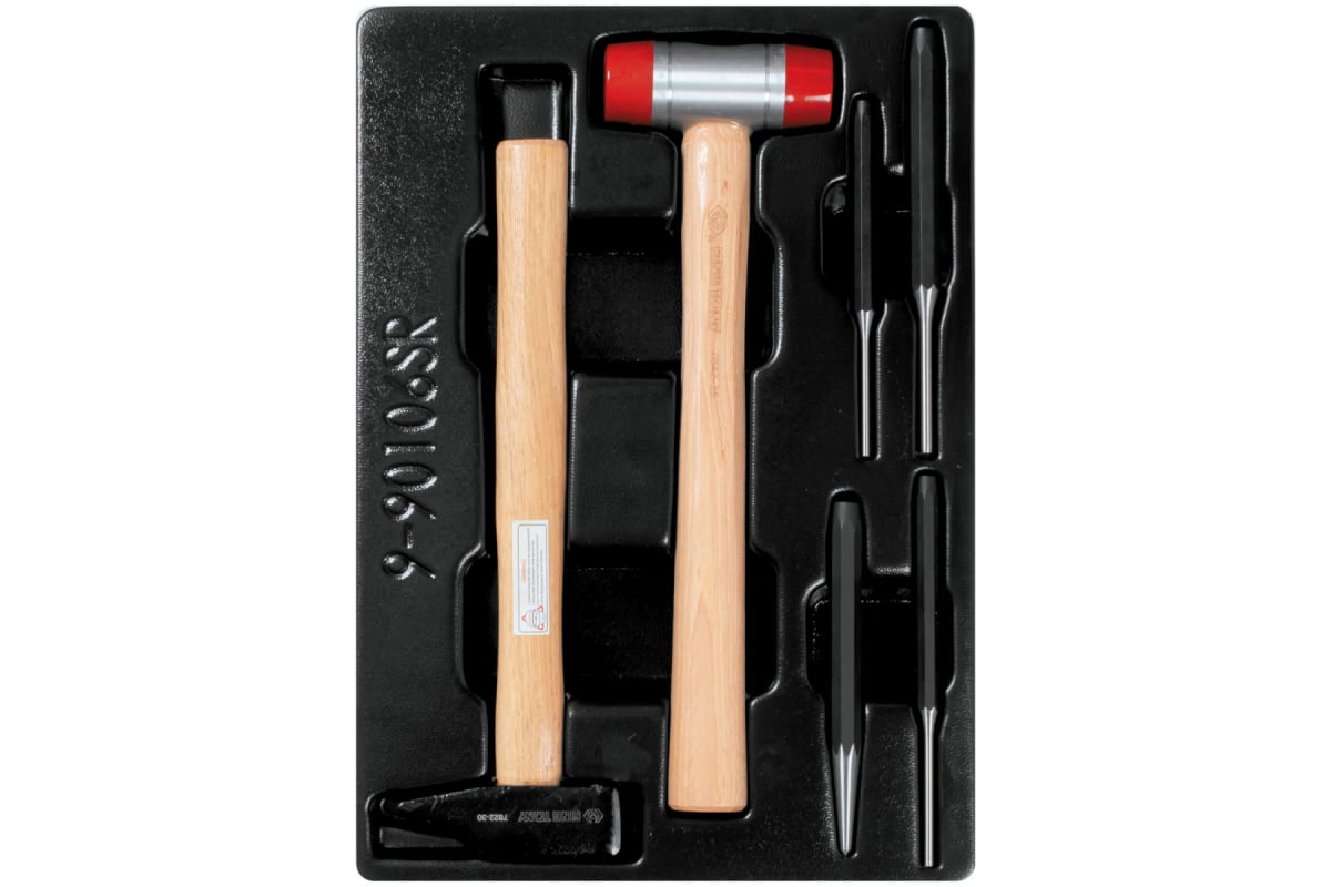 Ложемент для набора выколоток и керн с молотками 9-90106SR, PVC KING TONY 84714520B выполнен из прочного пластика. Материал устойчив к несильным ударам, не крошится и не распадается при длительной эксплуатации.