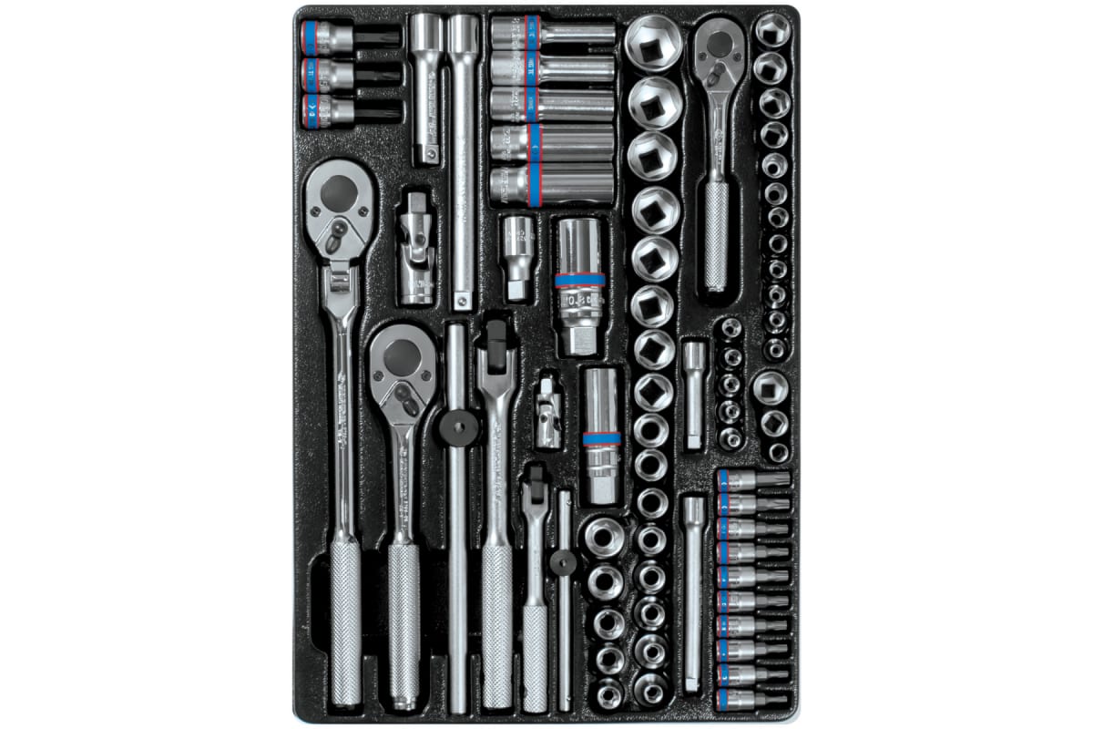 Ложемент для набора торцевых головок 9-5575MR, PVC KING TONY 84711820B выполнен из прочного пластика. Материал устойчив к несильным ударам, не крошится и не распадается при длительной эксплуатации.