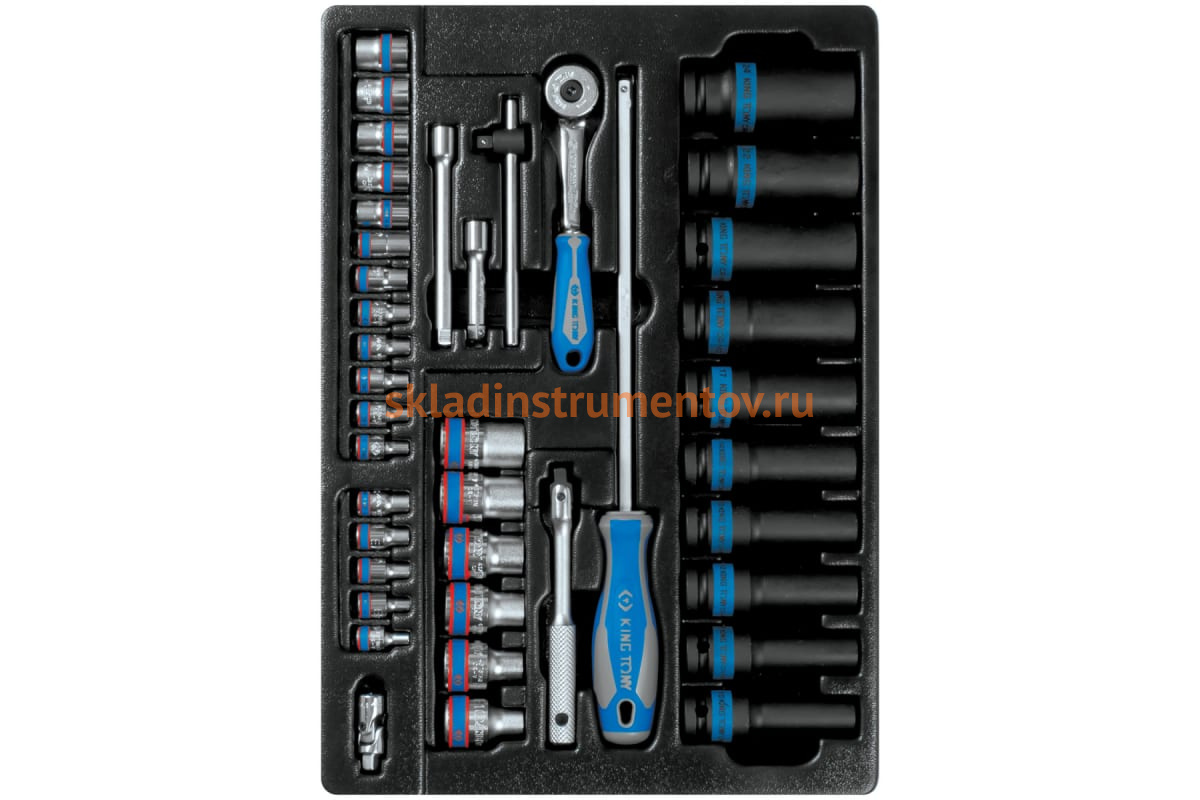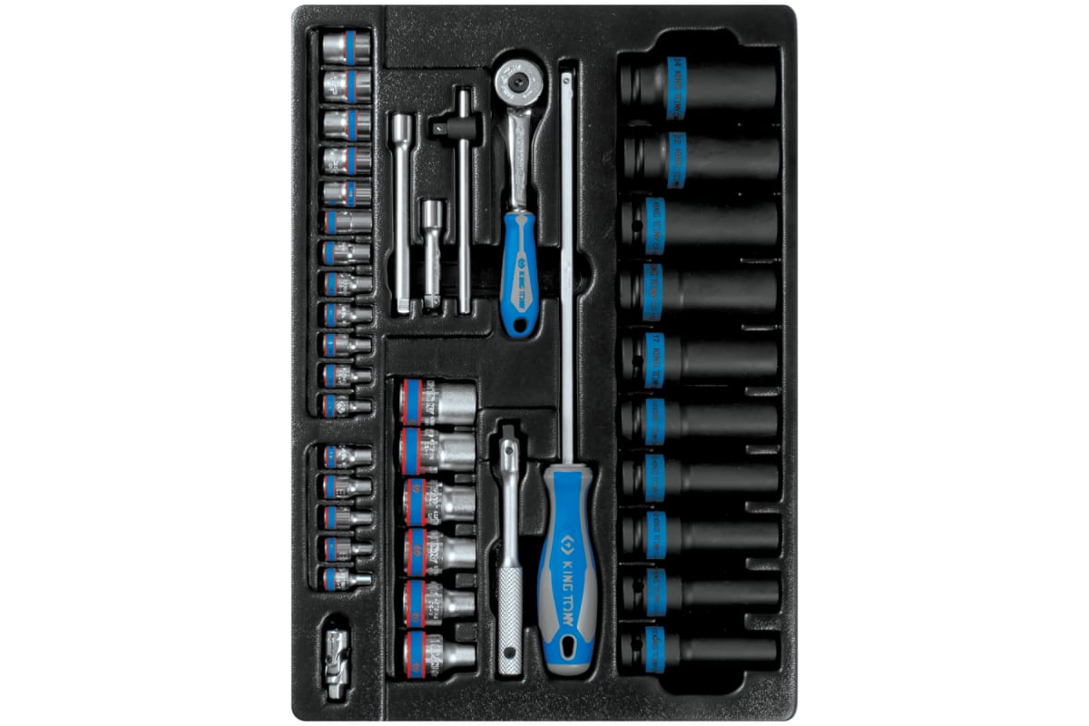 Ложемент для набора ударных головок 9-7540MR, PVC KING TONY 84711120B выполнен из прочного пластика. Материал устойчив к несильным ударам, не крошится и не распадается при длительной эксплуатации.