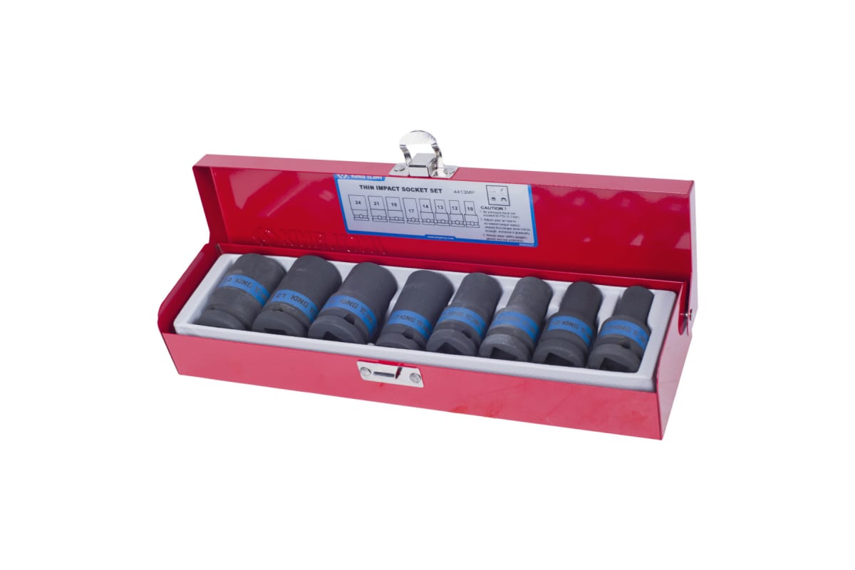 Ложемент для набора ударных торцевых головок 4413MP, PVC KING TONY 84441380H выполнен из прочного пластика. Материал устойчив к несильным ударам, не крошится и не распадается при длительной эксплуатации.