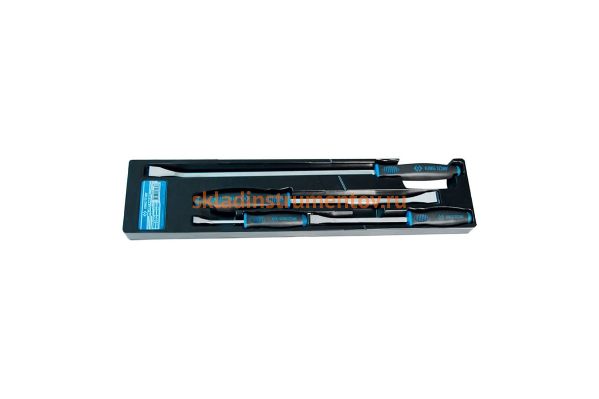 Ложемент для набора слесарных монтировок 9TK014, PVC KING TONY 849TK014B выполнен из прочного пластика. Материал устойчив к несильным ударам, не крошится и не распадается при длительной эксплуатации.