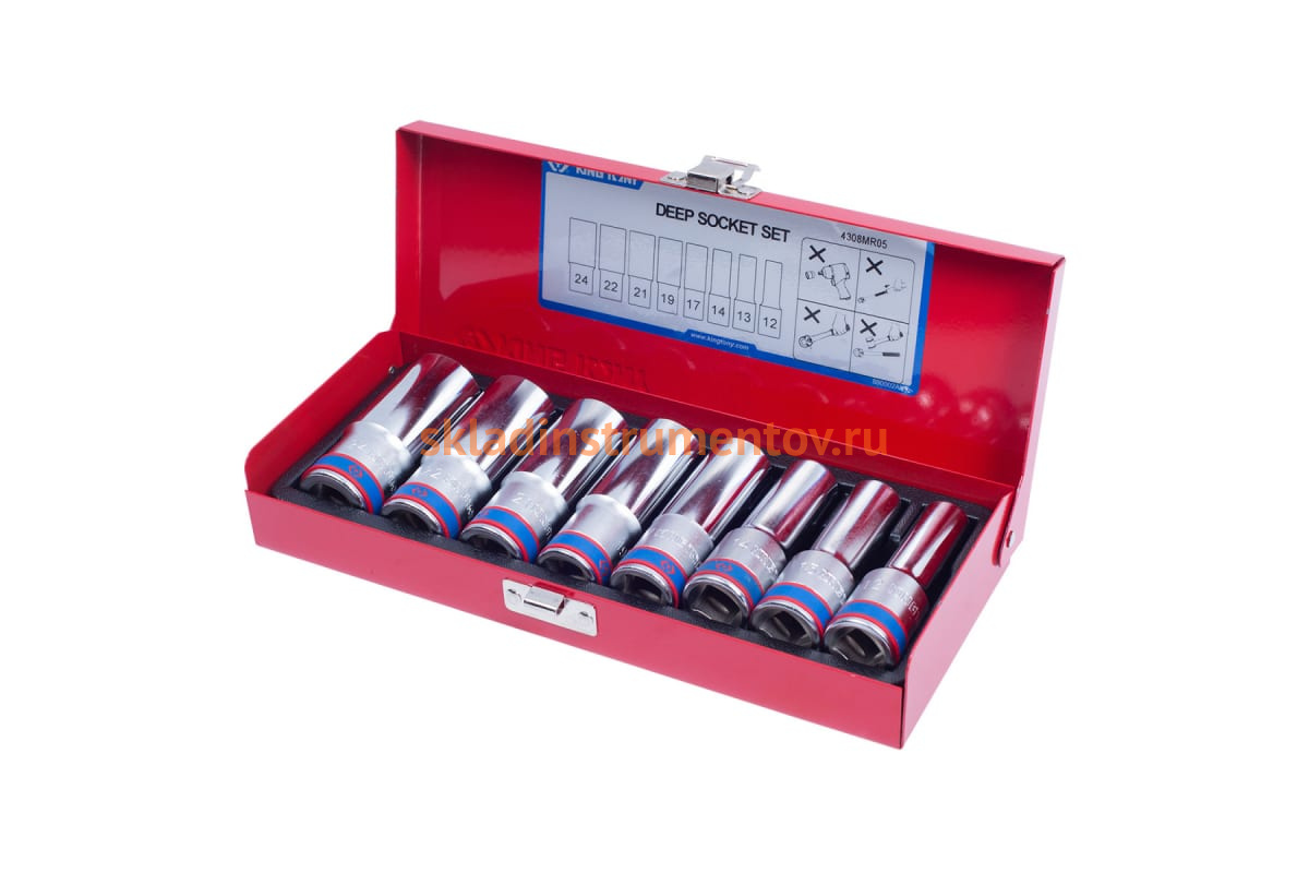 Ложемент для набора глубоких торцевых головок 4208MR01, 4308MR, 4308MR, PVC KING TONY 84430880B выполнен из прочного пластика. Материал устойчив к несильным ударам, не крошится и не распадается при длительной эксплуатации.