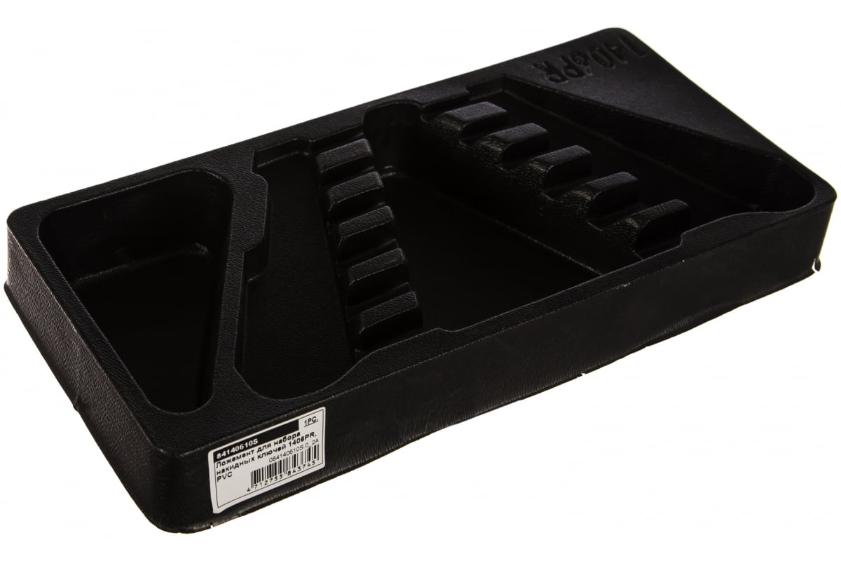 Ложемент для набора накидных ключей 1406PR, PVC KING TONY 84140610S выполнен из прочного пластика. Материал устойчив к несильным ударам, не крошится и не распадается при длительной эксплуатации.