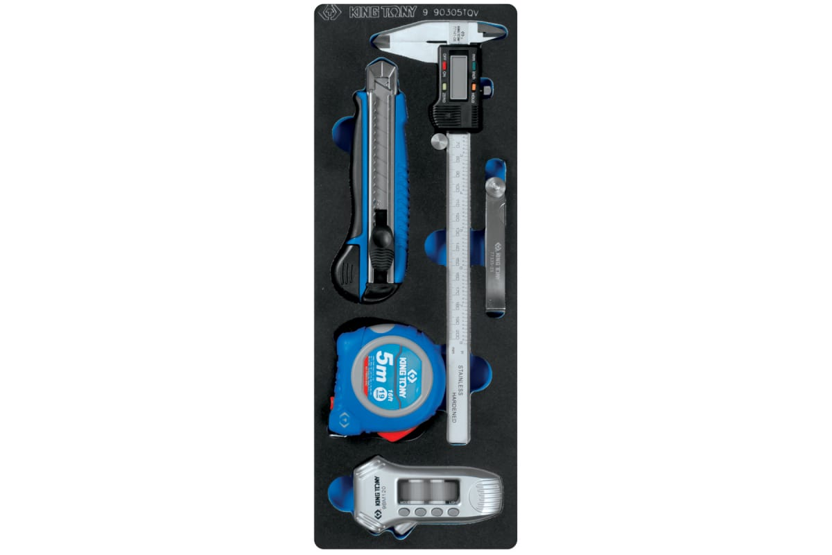 Ложемент для набора измерительных инструментов 9-90305TQV, EVA KING TONY 85810532B выполнен из прочного пластика. Материал устойчив к несильным ударам, не крошится и не распадается при длительной эксплуатации.
