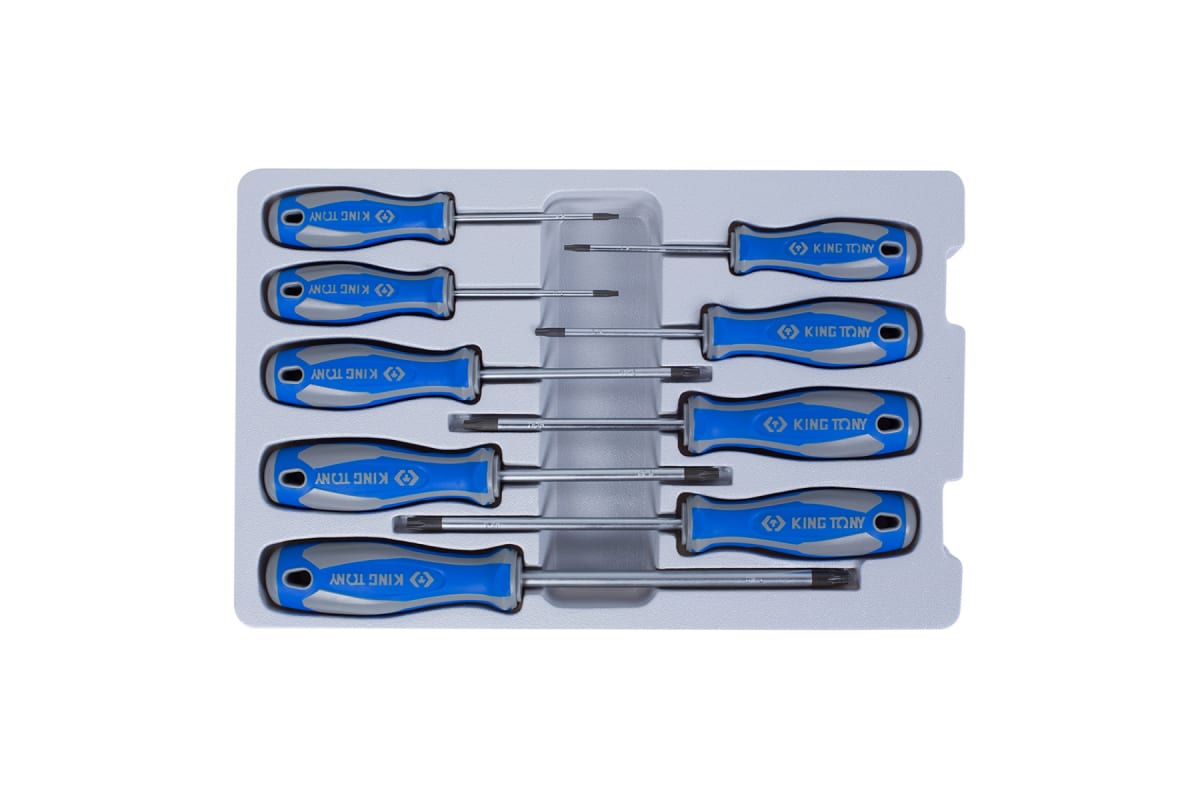 Ложемент для набора отверток 30309PR, PVC KING TONY 843030912H выполнен из прочного пластика. Материал устойчив к несильным ударам, не крошится и не распадается при длительной эксплуатации.