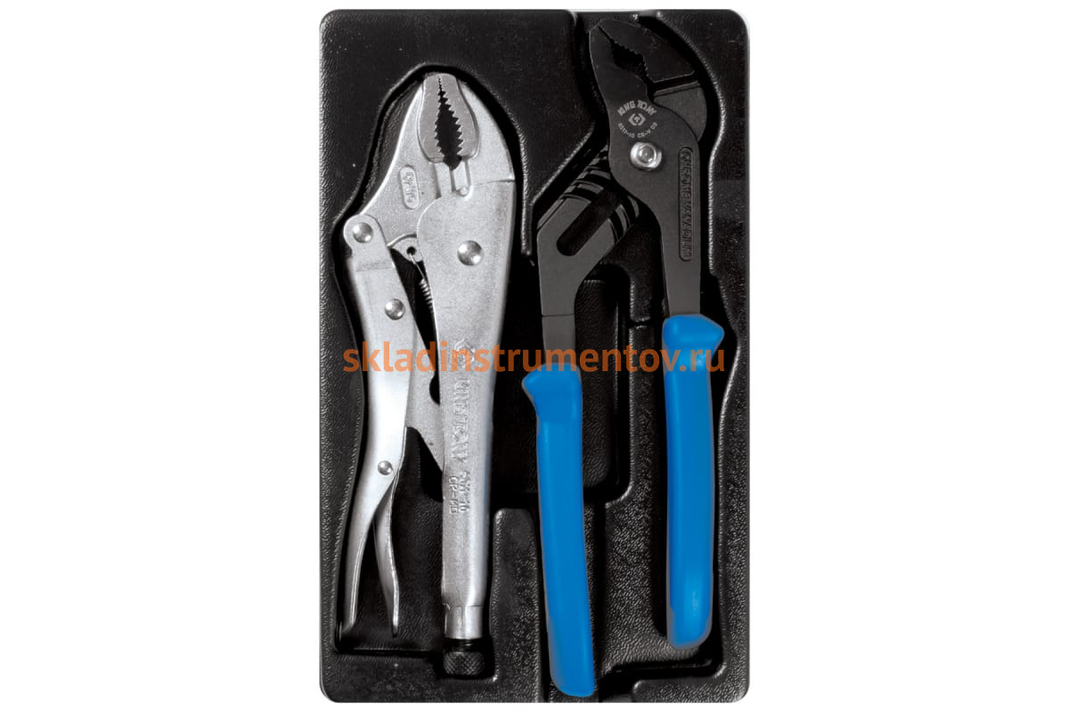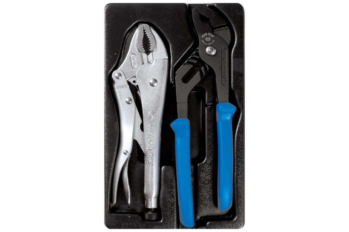 Ложемент для набора переставные клещи и зажим 9-40102GP, PVC KING TONY 84740220B выполнен из прочного пластика. Материал устойчив к несильным ударам, не крошится и не распадается при длительной эксплуатации.
