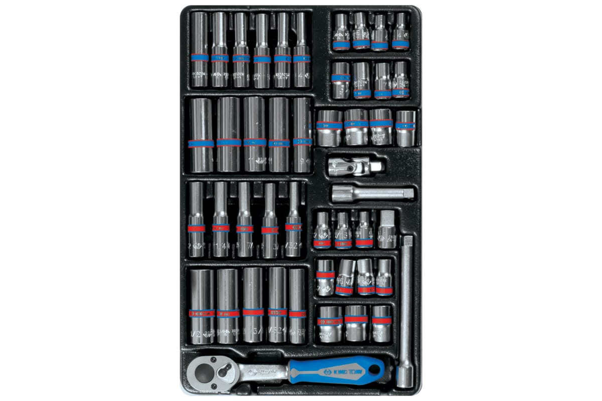 Ложемент для набора торцевых головок 9-2548CR, PVC KING TONY 84740120B выполнен из прочного пластика. Материал устойчив к несильным ударам, не крошится и не распадается при длительной эксплуатации.