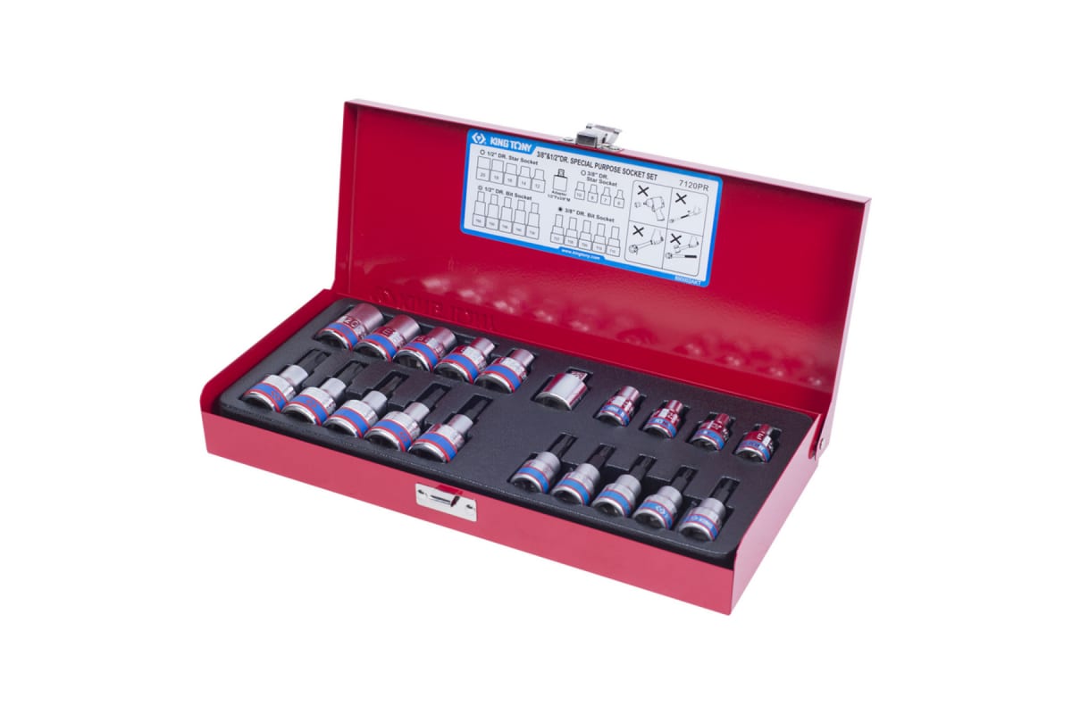 Ложемент для набора торцевых насадок и головок 7120PR, PVC KING TONY 84712012B выполнен из прочного пластика. Материал устойчив к несильным ударам, не крошится и не распадается при длительной эксплуатации.