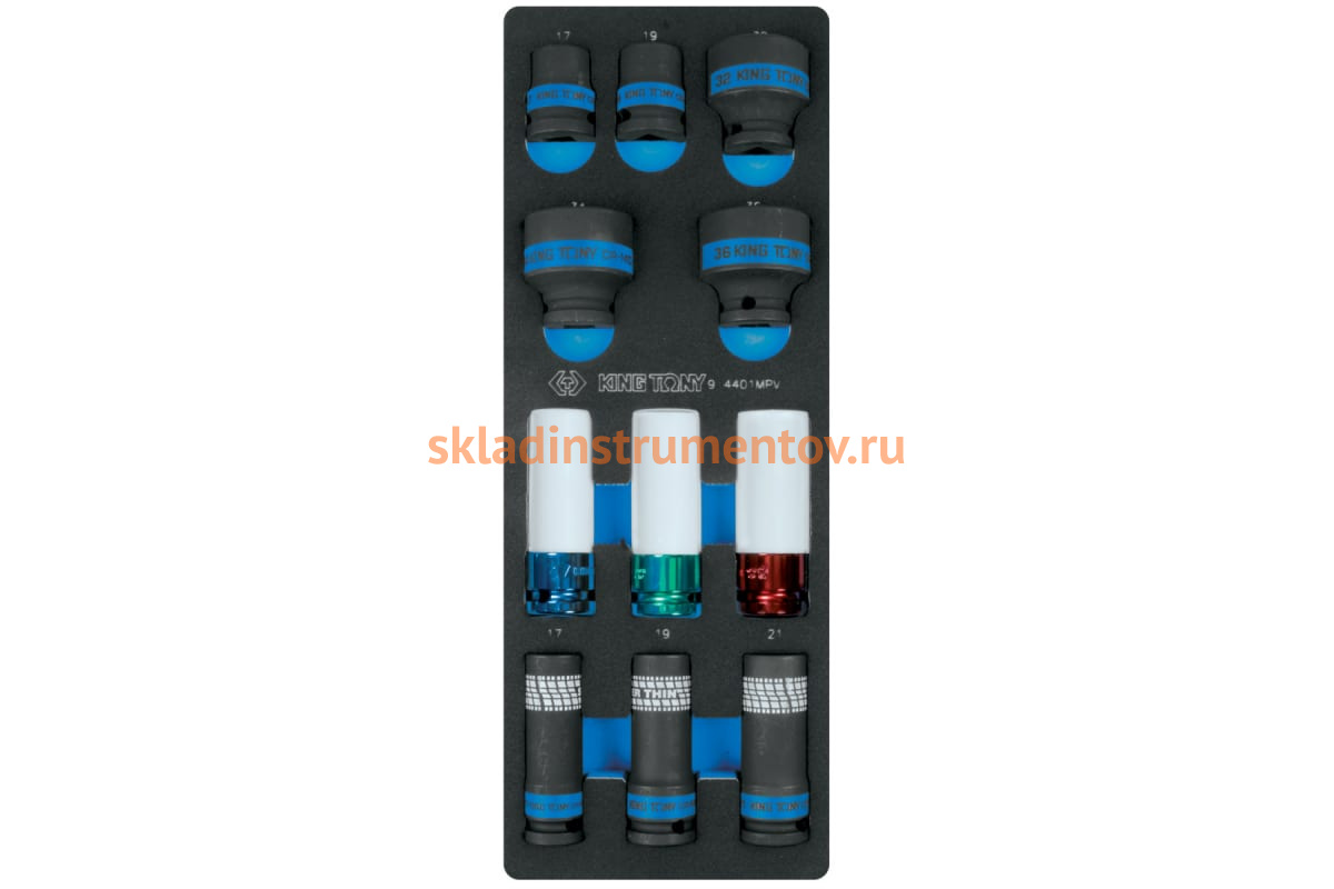 Ложемент для набора ударных головок 9-4401MPV, EVA KING TONY 85811432B выполнен из прочного пластика. Материал устойчив к несильным ударам, не крошится и не распадается при длительной эксплуатации.