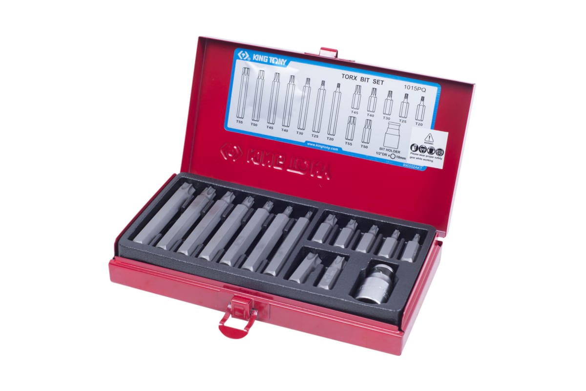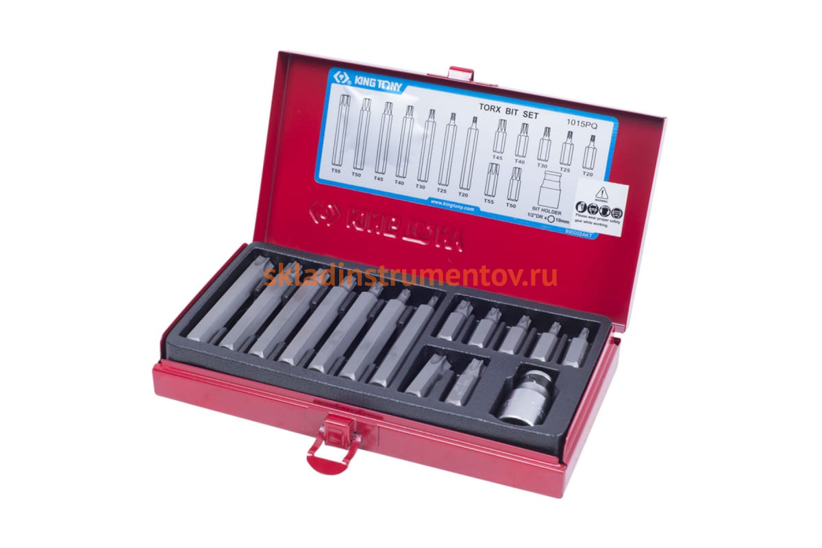 Ложемент для наборов вставок бит 1015MQ, 1015PQ, PVC KING TONY 84101510B выполнен из прочного пластика. Материал устойчив к несильным ударам, не крошится и не распадается при длительной эксплуатации.