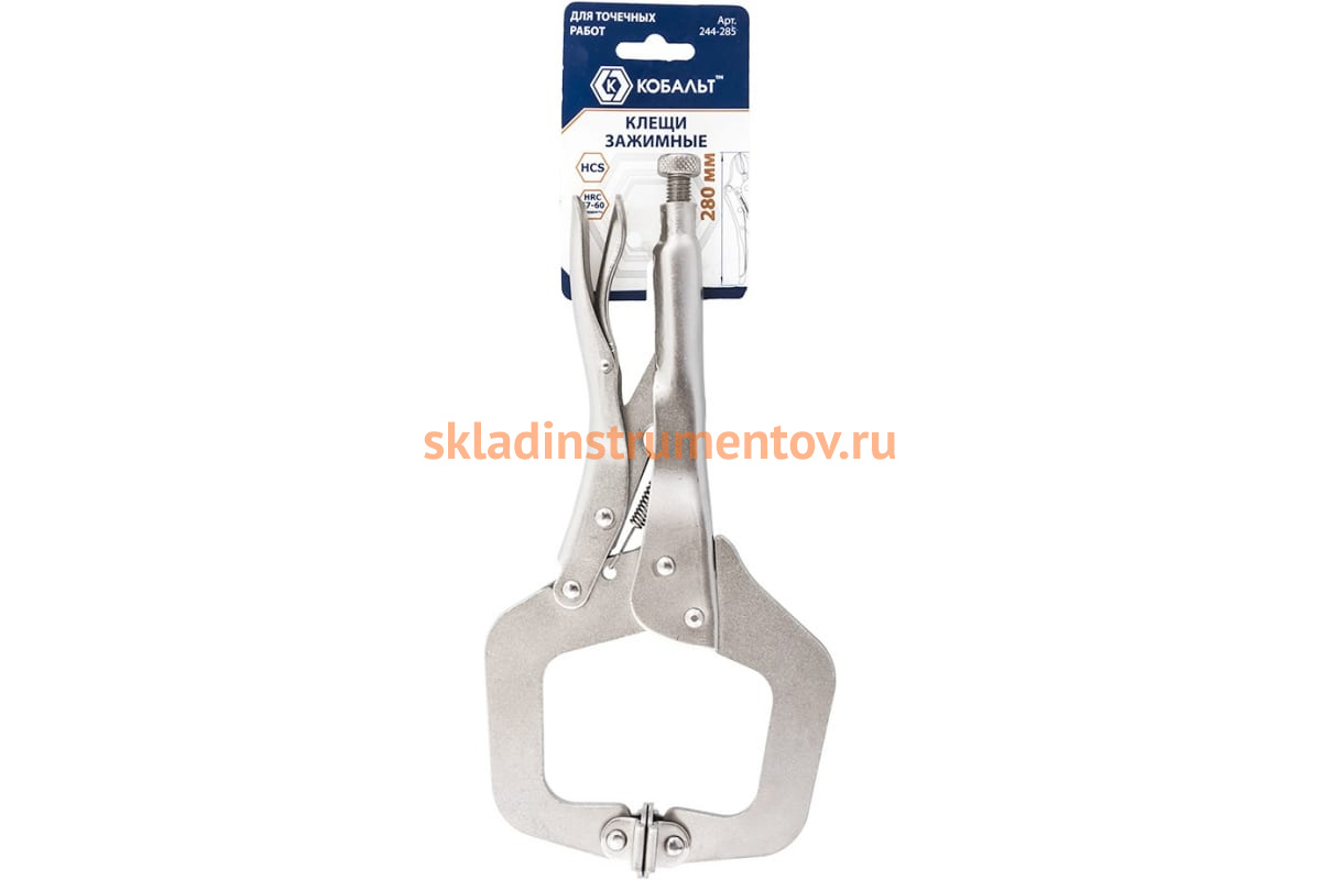 Зажимные клещи для точечных работ 280мм КОБАЛЬТ 244-285 служит для фиксации деталей и заготовок при необходимости выполнения сборочных или обрабатывающих операций. Инструмент имеет прочную конструкцию с высокой степенью твердости 57-62 HRC. Такие качества повышают срок службы изделия даже в условиях профессионального использования.