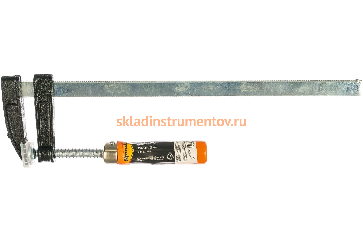 Струбцина F-образная 250х50 мм SPARTA 204295 используется для фиксации заготовки в процессе её обработки, либо для прижатия двух предметов при склеивании. Состоит из двух частей: рамы и подвижного кронштейна с винтовым зажимом. Ручка изготовлена из дерева и покрыта лаком для увеличения срока службы инструмента.