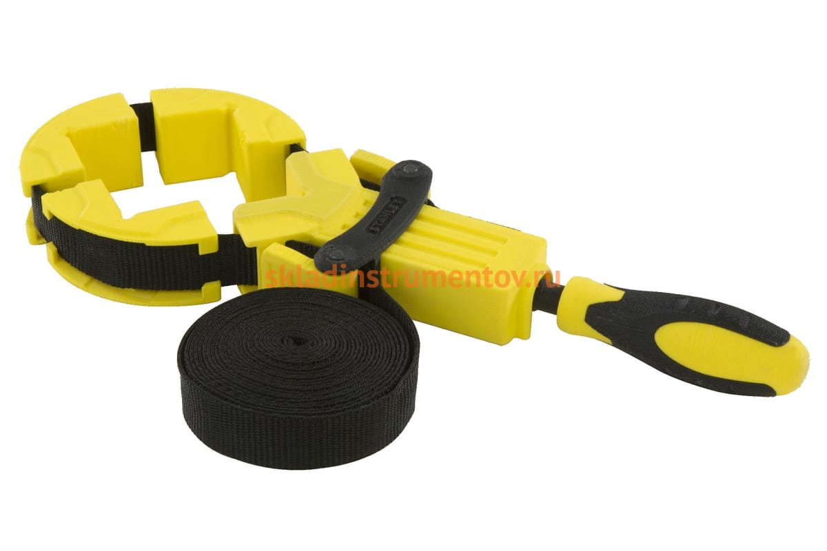 Ременная струбцина Bailey Stanley 0-83-100 служит для фиксации больших или сложных по форме предметов. Удобная эргономичная рукоятка обеспечивает комфорт в работе и позволяет увеличить прикладываемый крутящий момент во время использования инструмента. Вес устройства составляет 465 г. Губки раскрываются на расстояние до 4500 мм.