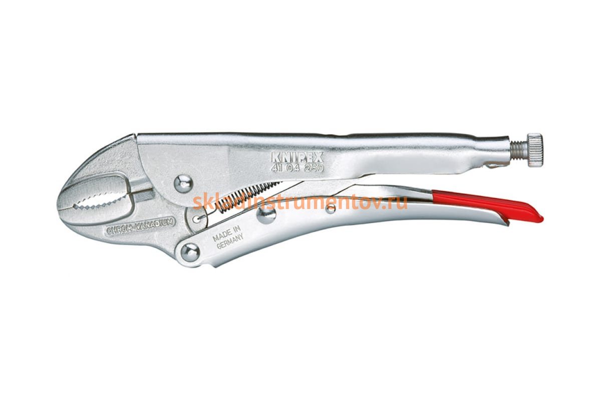 Зажимные клещи KNIPEX KN-4104250 применяются при сварочных работах для поддержки и закрепления круглых деталей. Износостойкие захватные губки с крупной насечкой обеспечивают крепкий зажим. Инструмент имеет простую и удобную регулировку зева с помощью винта на рукоятке. Предусмотрен рычаг разблокировки для быстрого разжатия клещей. Конструкция рукоятки позволяет снять с руки значительную часть нагрузки при проведении работ. Это дает возможность работать одной рукой.