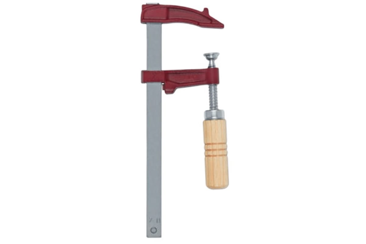 Струбцина с деревянной рукоятью Piher MM 30х7см, 4000N 02030 обеспечивает быструю и жесткую фиксацию заготовок из дерева. Инструмент F-образной формы отличается высоким уровнем прочности и препятствует смещению детали в процессе работы. Глубина захвата составляет 7 см / 5.7 см до зажимной площадки / вместе с ней. Рукоятка из бука имеет 3 канавки для удобства пользования.