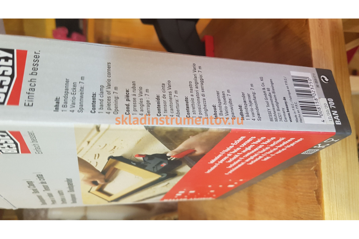 Ленточный зажим BESSEY BE-BAN700 - это универсальный инструмент для подгонки углов. Он используется при работе с деревом, пластмассой и металлом. Инструмент содержит 1 ленточный зажим и 4 устройства для подгонки углов. При ослаблении зажима срабатывает автоматическое самофиксирующее устройство. Масса ленточного зажима 560 г.