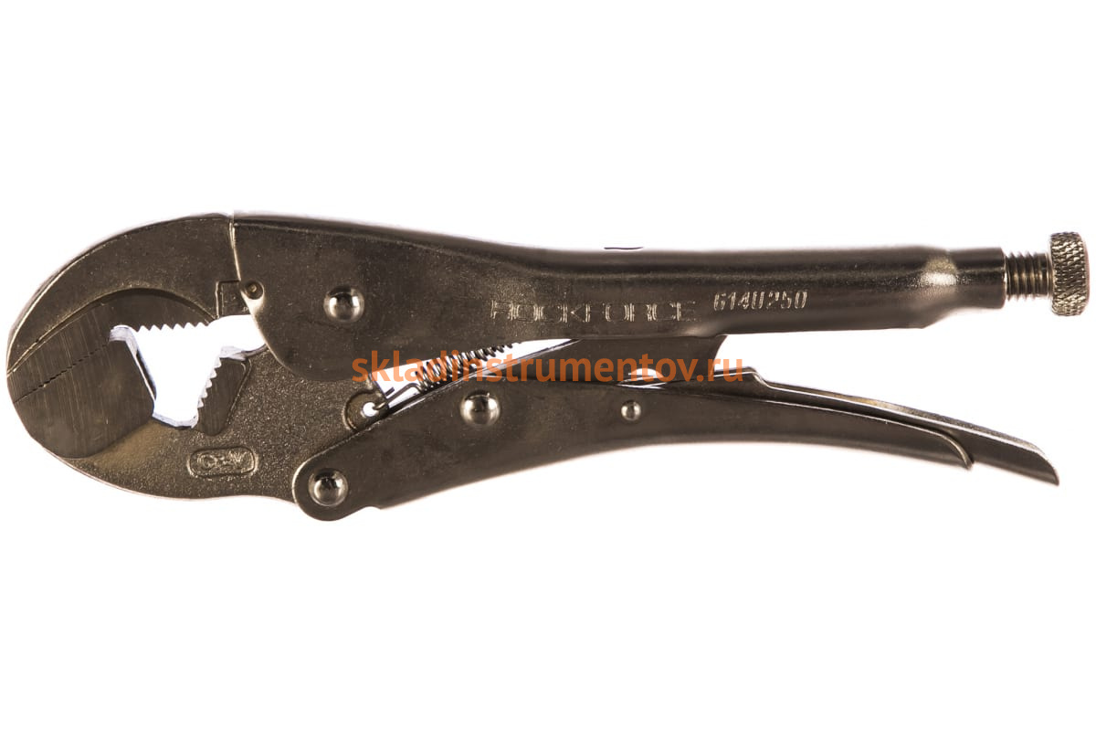 Гейферный зажим с двойным захватом и плавающей нижней губкой 10-250мм ROCKFORCE RF-614U250 удобен в использовании за счет прочной металлической рукояти.