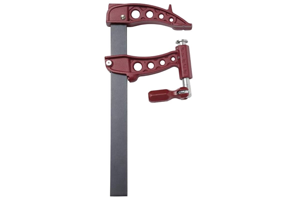 Струбцина Piher Maxi-R 200х16см, 10000N 61200 обеспечивает быструю и жесткую фиксацию заготовок из металла или дерева. Инструмент F-образной формы отличается высоким уровнем прочности и препятствует смещению детали в процессе работы. Глубина захвата составляет 14 см / 16 см до зажимной площадки / вместе с ней. Максимальная длина зажимаемой детали - 200 см. Продуманная конструкция гарантирует значительное усилие прижима - 1 тонну.
