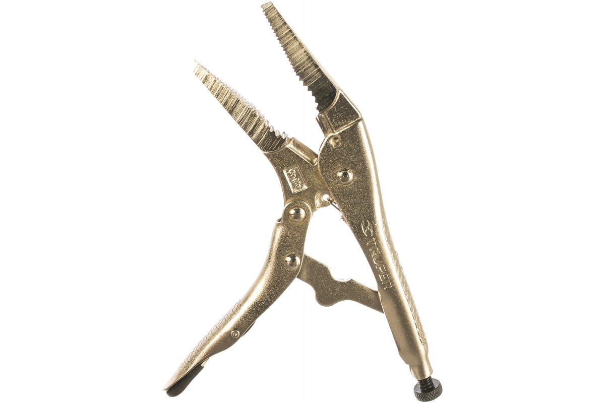 Силовые клещи Truper PPT-9PL 17433 имеют удлиненные губки, суженные к кончикам, что обеспечивает удобство зажима заготовки в труднодоступных местах. Рифленые рабочие поверхности губок обеспечивают прочный хват. Инструмент имеет усиленную конструкцию и полностью выполнен из качественной стали. Клещи прослужат долгий срок даже при частом и интенсивном использовании.