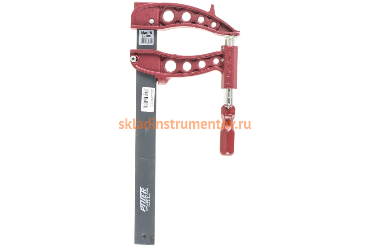 Струбцина Piher Maxi-R 30х16см, 10000N 61030 обеспечивает быструю и жесткую фиксацию заготовок из металла или дерева. Инструмент F-образной формы отличается высоким уровнем прочности и препятствует смещению детали в процессе работы. Глубина захвата составляет 14 см / 16 см до зажимной площадки / вместе с ней. Модель легка в эксплуатации. Для простоты смазывания есть специальное отверстие.
