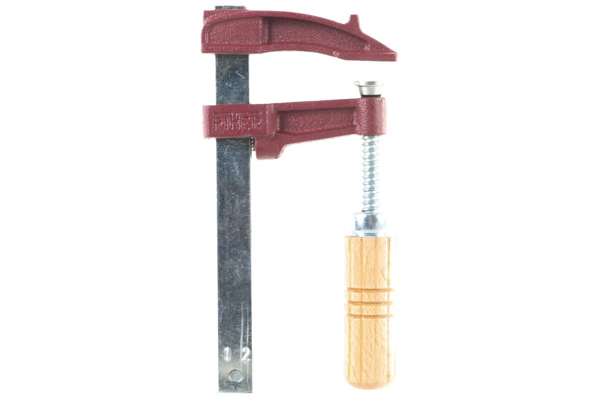 Струбцина с деревянной рукоятью Piher MM 12х7см, 4000N 02012 обеспечивает быструю и жесткую фиксацию заготовок из дерева. Инструмент F-образной формы отличается высоким уровнем прочности и препятствует смещению детали в процессе работы. Глубина захвата составляет 7 см / 5.7 см до зажимной площадки / вместе с ней. Модель находит применение в мебельном производстве. Материал рукоятки - бук.