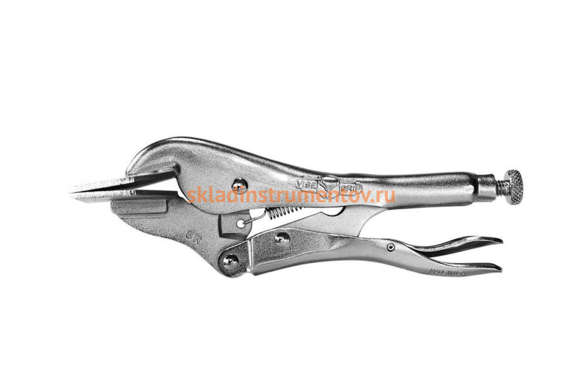 Самоусиливающаяся нижняя губка для надежного захвата. Конструкция оснащена регулировочным винтом под шестигранный ключ, что позволяет управлять инструментом для разжимания или фиксации. Курок упрощает разжатие губок и позволяет сделать это в одно действие.