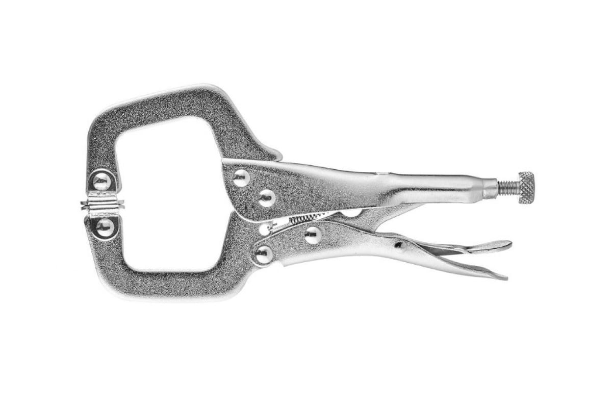Ручной зажим с фиксатором ПТК РЗФ-6,0 Тип C 00000034426 оснащен пружиной и подвижными губками, которые облегчают сжатие детали.