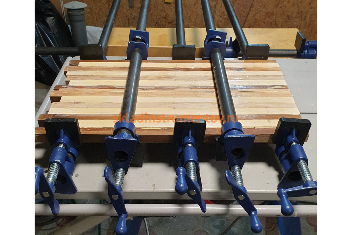 Струбцина трубная 3/4'' КОБАЛЬТ 246-074 применяется для быстрой фиксации крупных деталей и заготовок для обработки, склейки или сварки. В комплект входят 2 чугунные губки, одна из которых имеет трубную резьбу 3/4" и зажимной винт с ходом 50мм, вторая губка фиксируется на рейке с помощью косого пластинчатого зажима. В качестве рейки используется труба произвольной длины с резьбой 3/4'' на одном конце, приобретаемая отдельно. Толщина зажимаемых заготовок произвольная в пределах длины трубы-рейки, усилие сжатия до 150кгс.