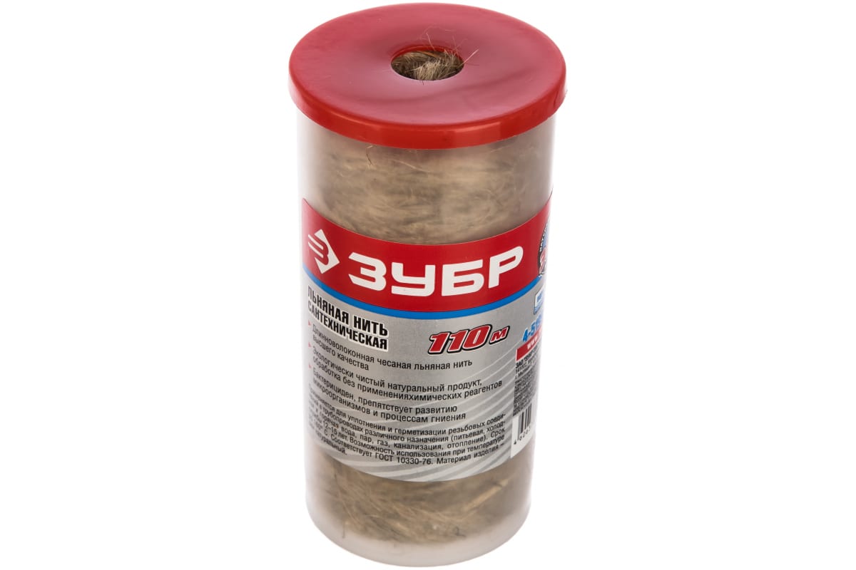 Нить сантехническая Зубр 4-51992-110 необходима для герметизации трубных соединений (вода, пар, газ, канализация, отопление). Выполнена из экологически чистого материала - натурального льна, предотвращающего возникновение плесени и гниения. Можно использовать при температуре до +160 0С. При попадании воды разбухает, тем самым уплотняя трубопровод.