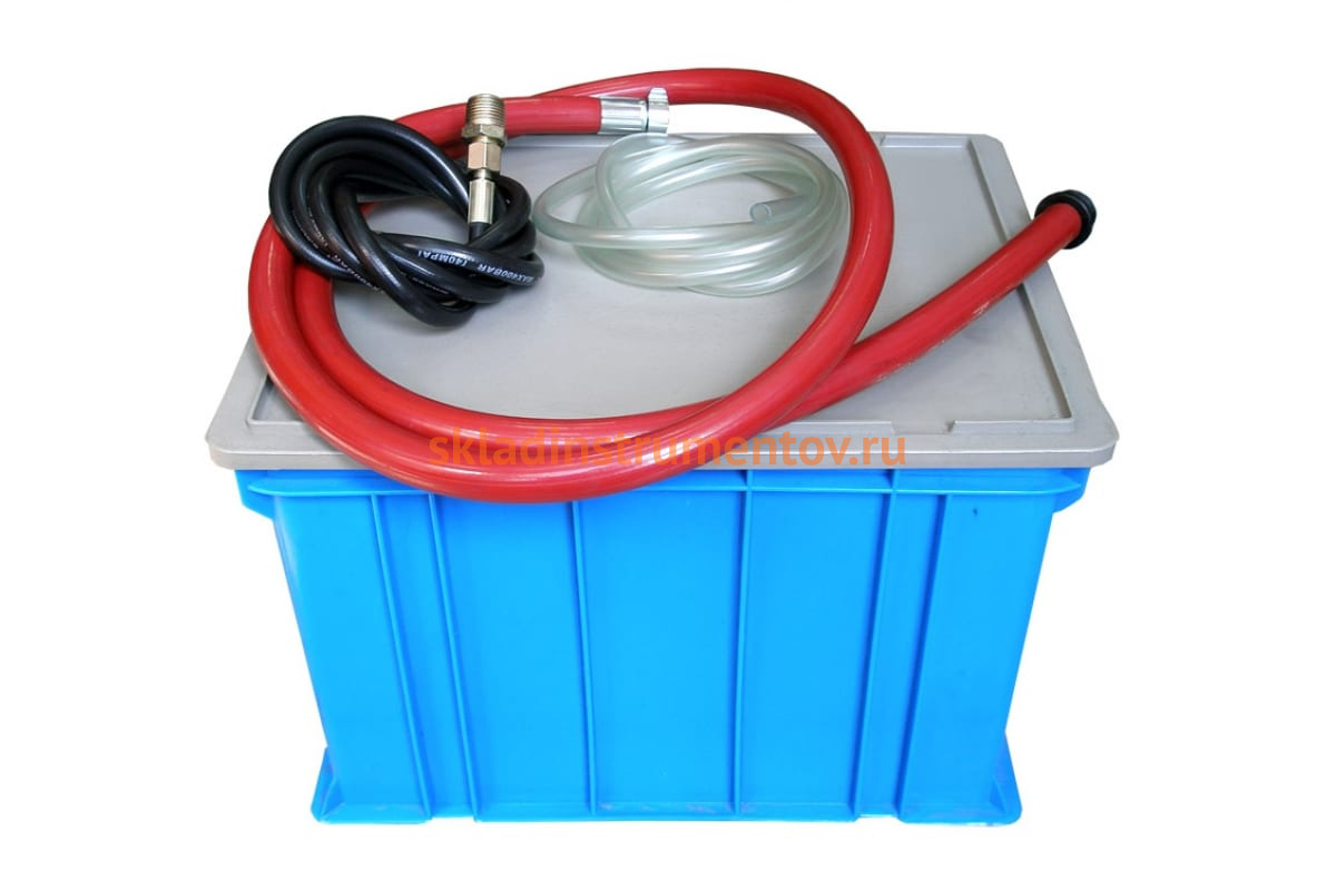 Поставляется с пластиковым коробом, который можно использовать как резервуар для жидкости или транспортировочный ящик.