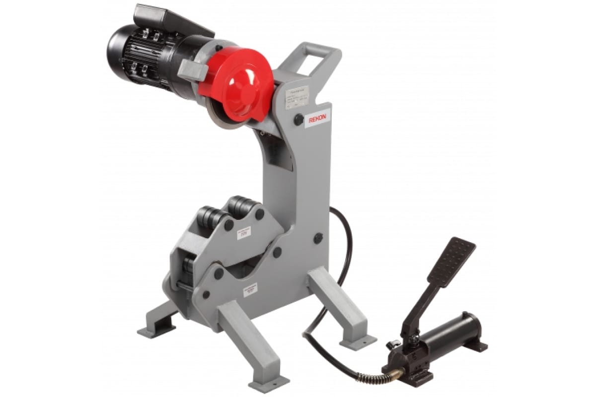 Электрический труборез для стальных труб (2 1/2 - 12 дюймов, 750 Вт, 220 В) REKON RC-12HS 022212 обеспечивает чистый и быстрый рез. Не рекомендуется использовать станок для отреза чугунных труб во избежание быстрого износа диска. Конструкция обеспечивает надежное удержание труб. Мощный двигатель позволяет работать с любой толщиной стенок.