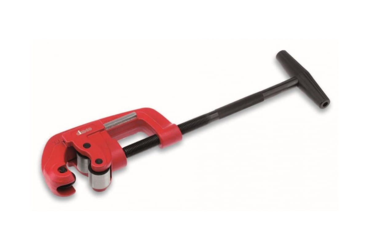 Труборез CIMCO 12 0472 применяется для резки стальных труб диаметром от 10 до 60 мм. Инструмент имеет один режущий диск и два направляющих ролика. Размер трубореза - 390 мм.