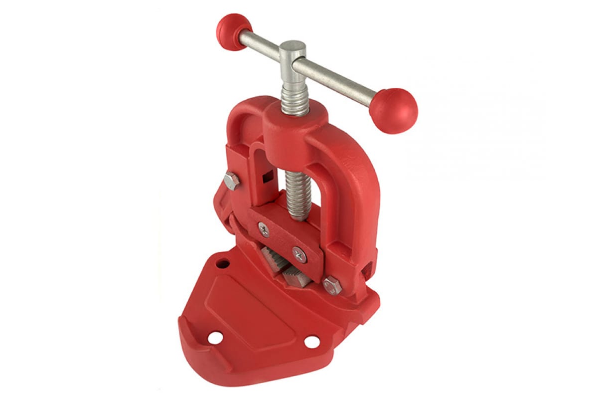 Корпус и хомут выполнены из чугуна и отличаются высокой прочностью. На рукоятке имеются ластиковые наконечники для удобного захвата при работе.