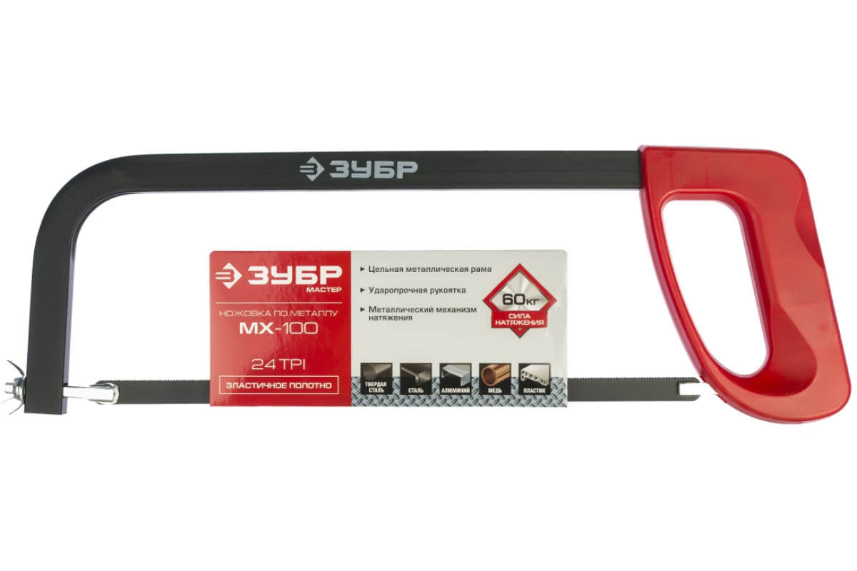 Ножовка по металлу 300мм Зубр МАСТЕР 15761_z01 состоит из стальной рамы и удобной пластиковой рукоятки. Натяжение полотна легко регулируется с помощью винта. Инструмент позволит быстро и эффективно справиться с резкой металлических заготовок и деталей.