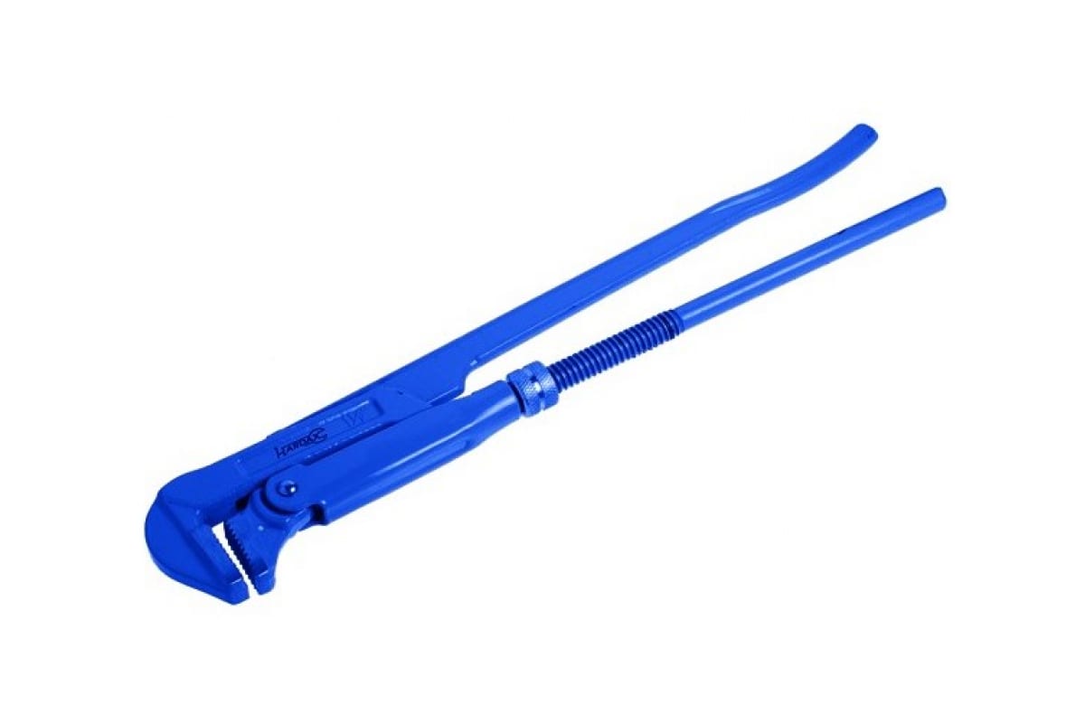 Зазубренные губки обеспечивают надежное сцепление с трубами, а рычажная система полностью передает усилие.
